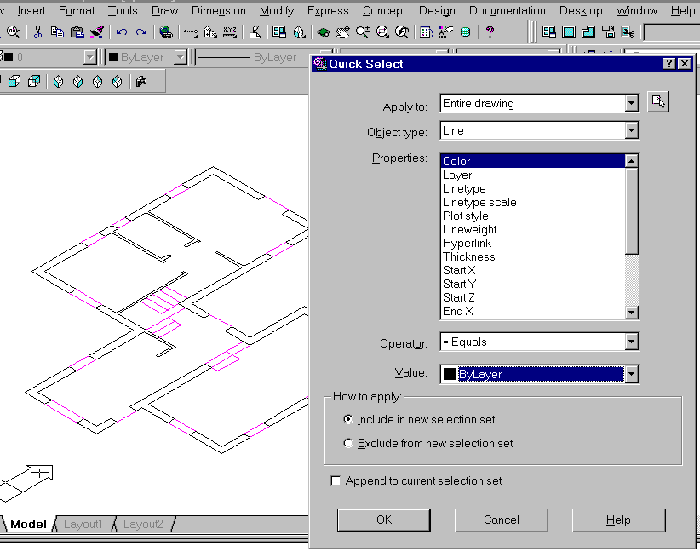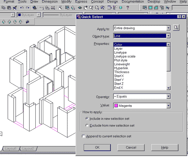 Mε Quick Select επιλέξτε όλες τις γραμμές των τοίχων, που έχουν σχεδιαστεί με χρώμα